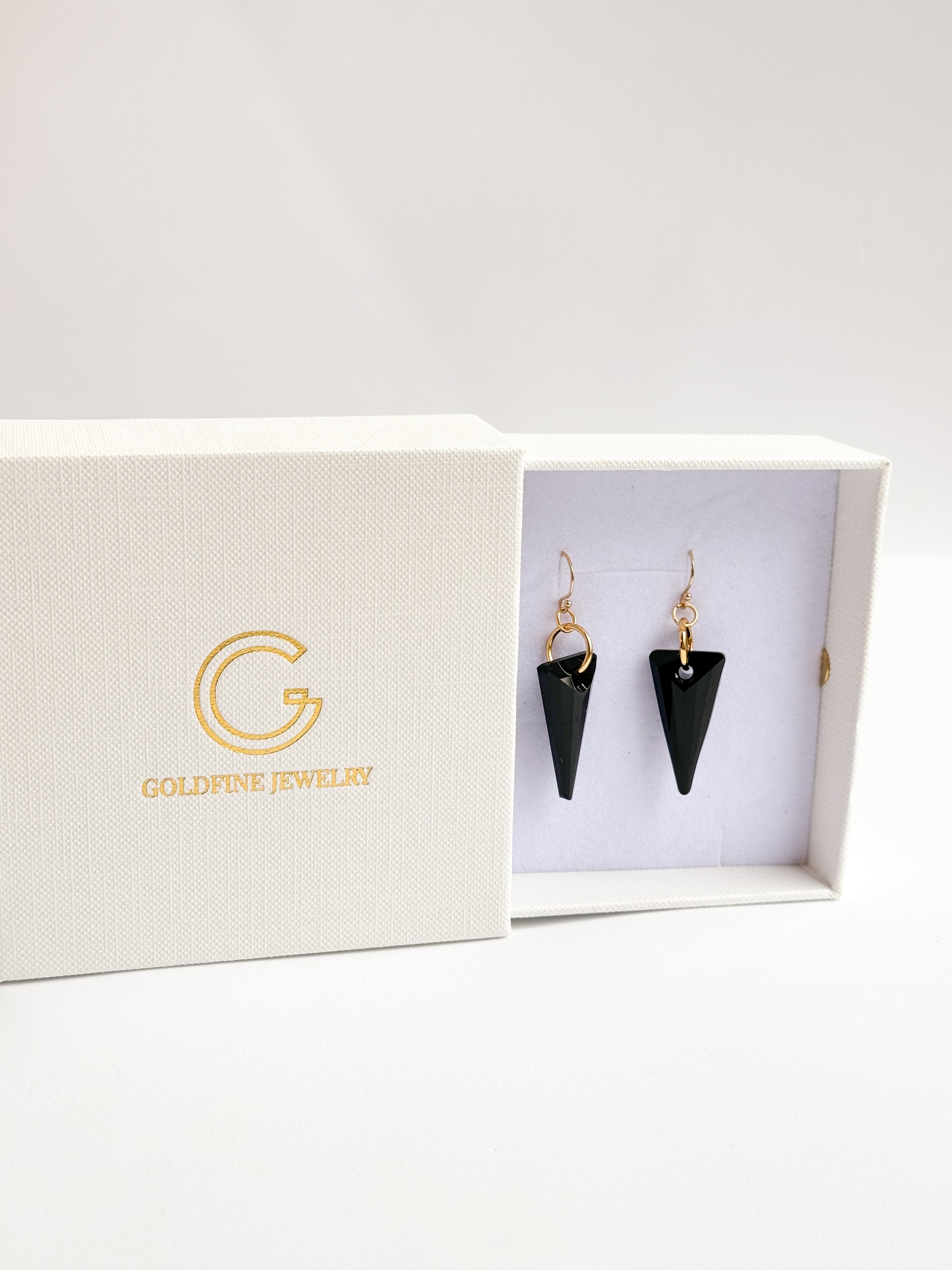 To pair with your Bow Necklace, or as standalone earrings! Featuring Swarovski crystal spikes with 14 karat gold filled or sterling silver ear wire. These black crystal spike earrings are the excellent choice for adding a sophisticated edge to your outfit.