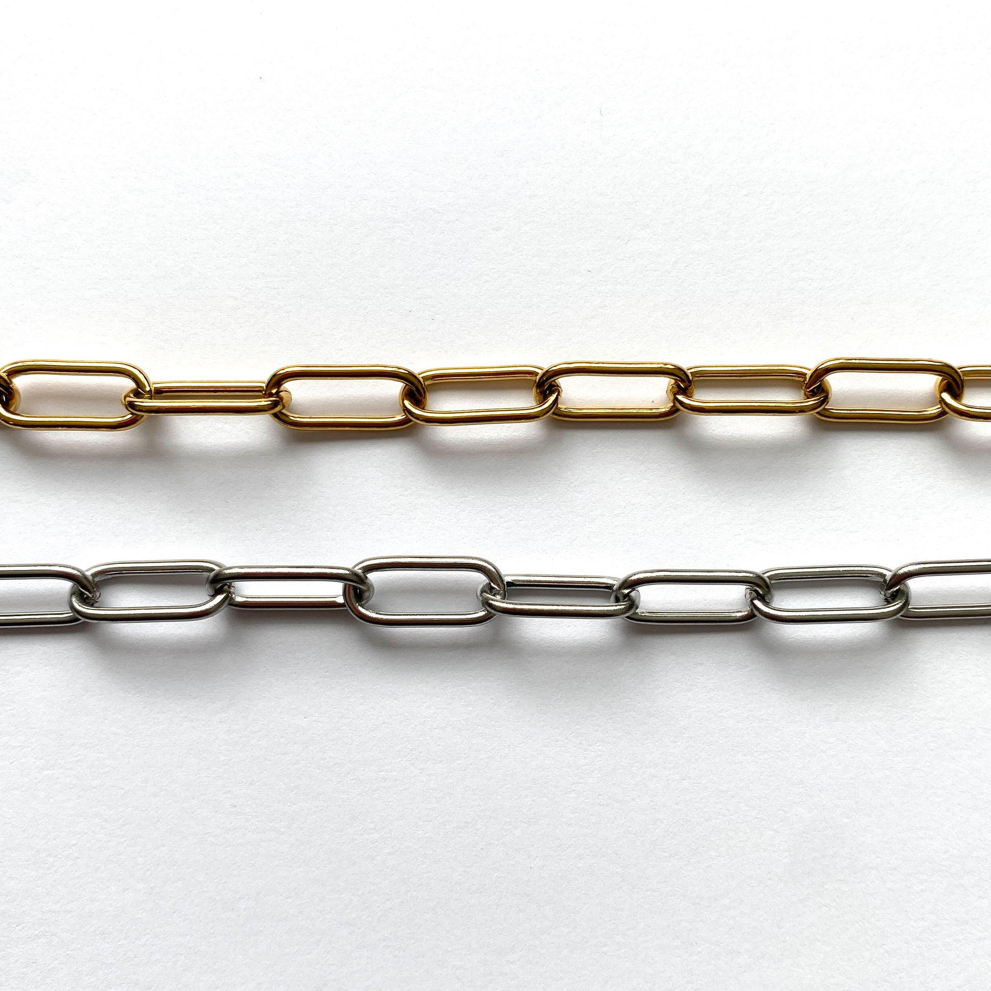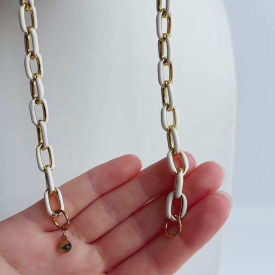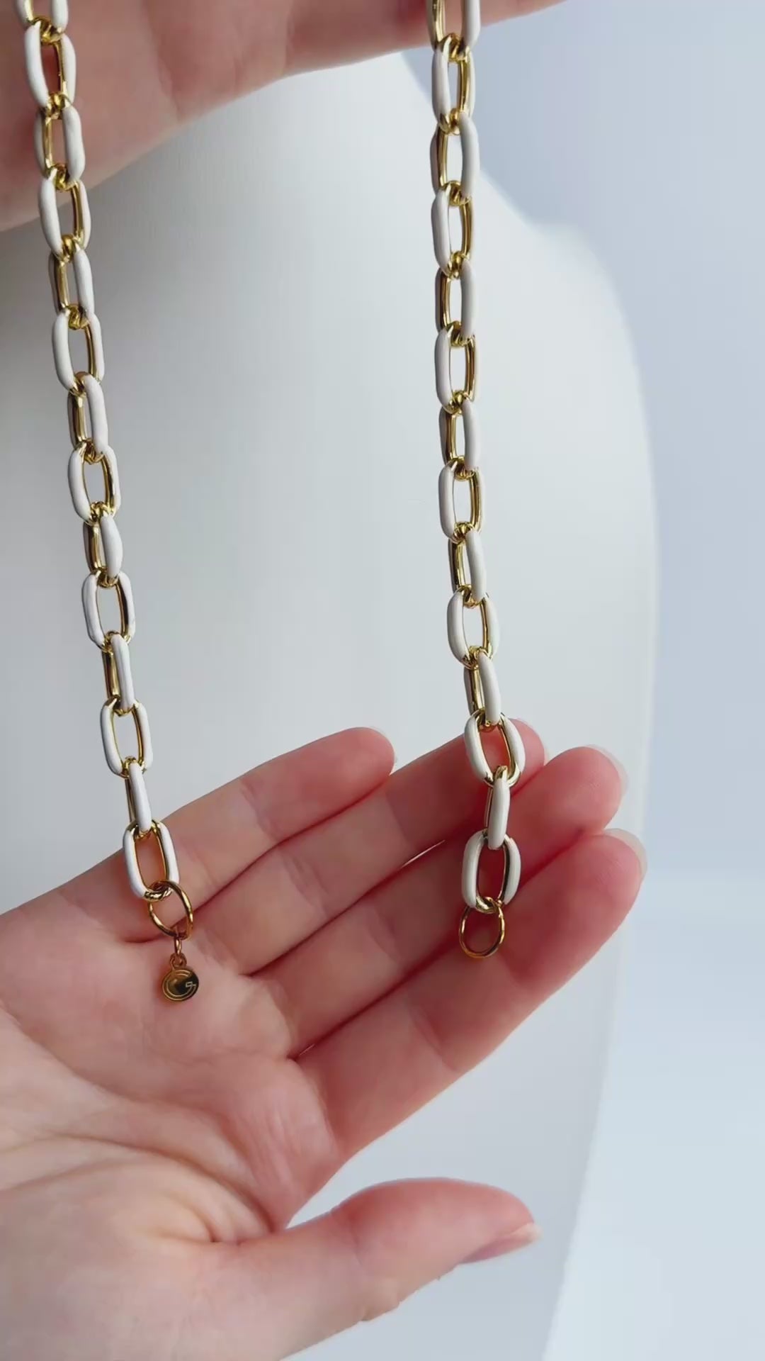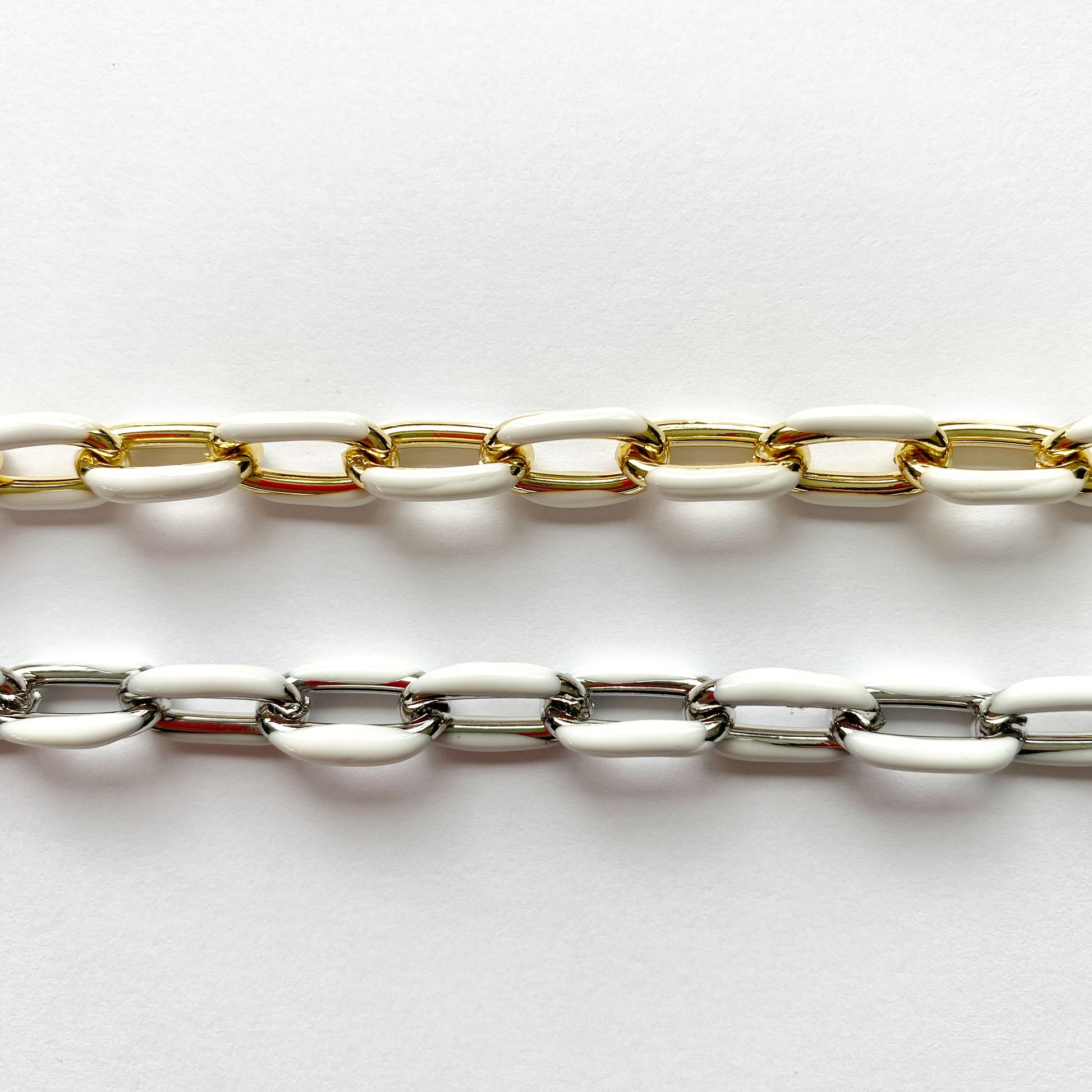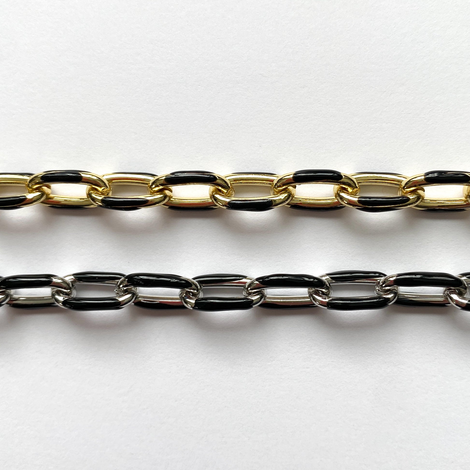 Dive into endless possibilities with our curated collection of 17.5" chains for the Build Your Own Necklace Bar. Choose from four enamel-covered neutral options in black and white, available in both gold and silver metals, or opt for the simplicity of our plain gold and silver chains. Each chain is a blank canvas, waiting to be paired with your choice of clasp to create a complete necklace. Embrace a minimalist elegance by wearing it simply with a clasp, or infuse your style with personality by adding charms for a playful touch.