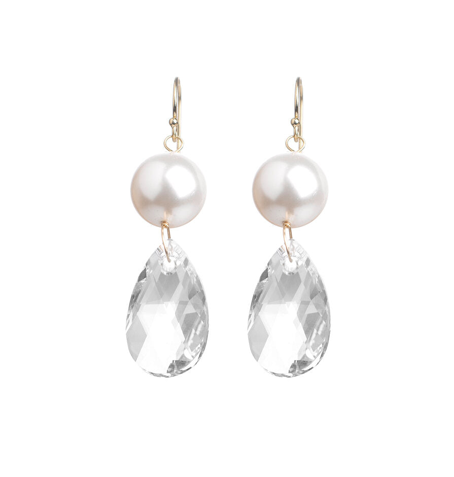 Our Crystal Pearl Drop Earrings are the perfect combination of classic elegance and sophistication. Originally designed for bridal parties, these versatile earrings can be worn for any special occasion. The sparkling clear crystals and crystal pearls are complemented by Sterling Silver or 14K gold-fill, making them a chic and delicate addition to any outfit.