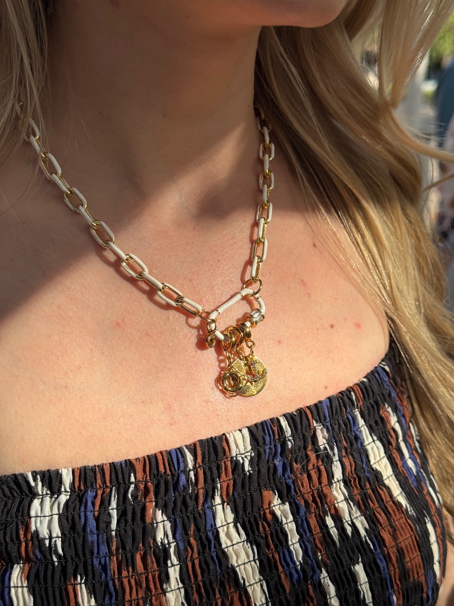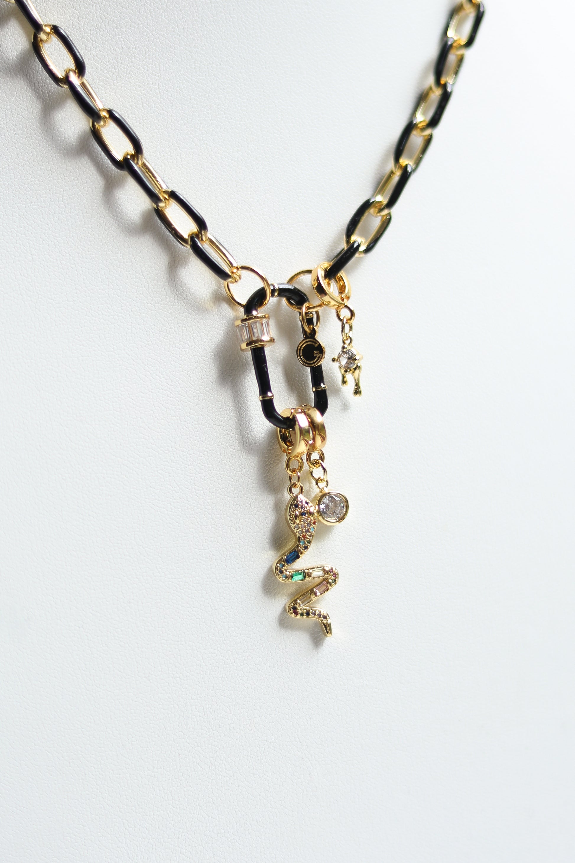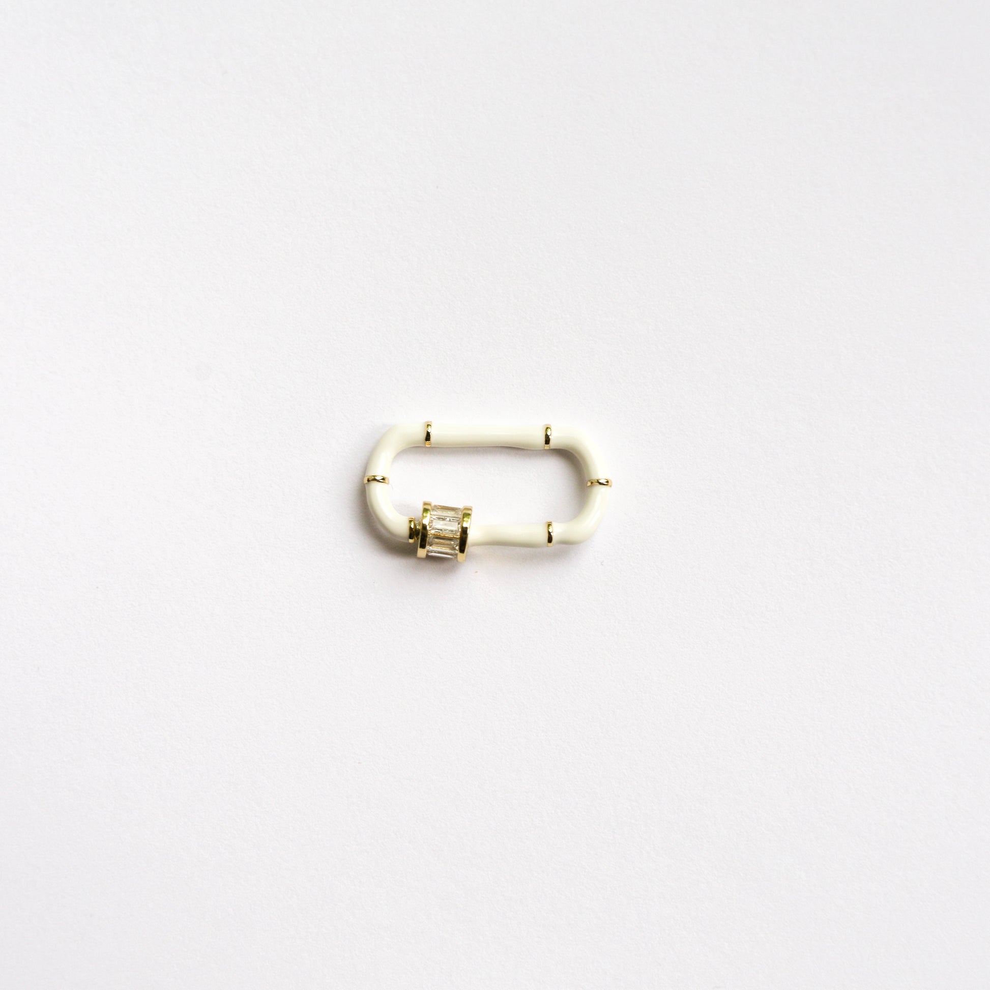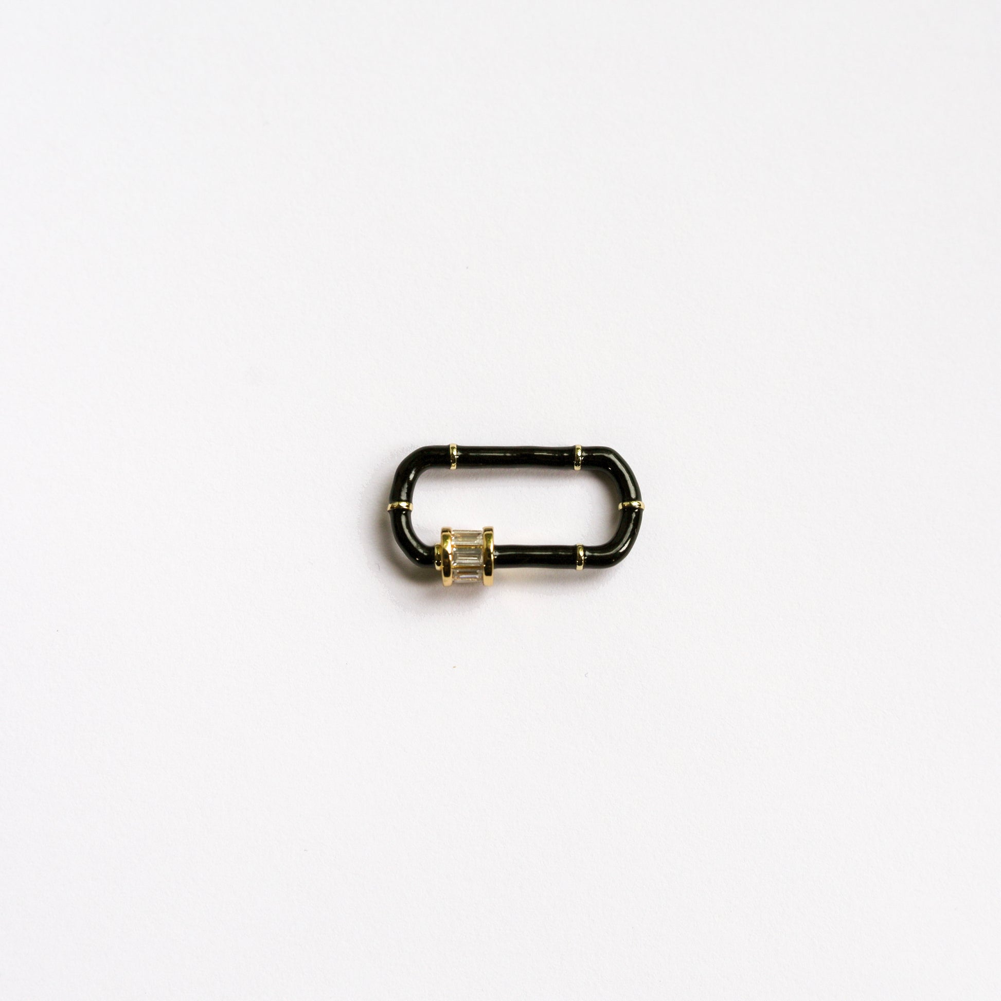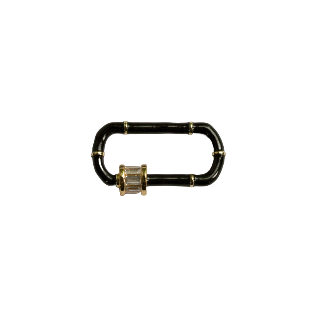 Black or white large enamel clasp set with baguette cut stones. Great for a fun accent with sparkles! This clasp is fun to style with a matching enamel chain, or as your accent of color in your necklace.