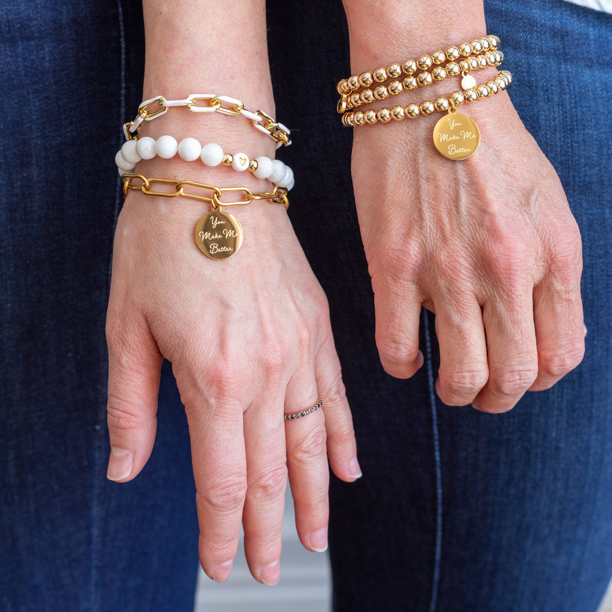 Jewelry is not only a pretty thing we wear, it's something that holds meaning and becomes a part of who we are. The theme at Jack's Basket is "You Make Me Better" and we've partnered to create a bracelet to act as a constant reminder that we are all connected and affected by one another. A reminder that YOU make a difference in someone's life. "You Make Me Better".