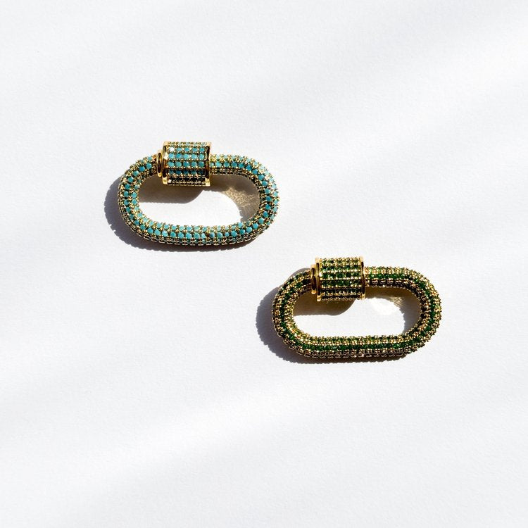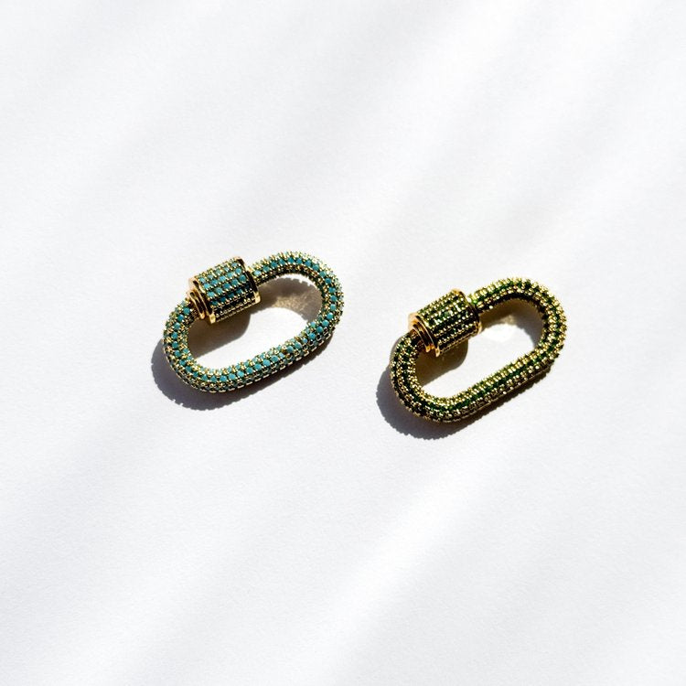 Introducing our stunning clasps for The Build Your Own Jewelry Bar, available in two vibrant colors: Blue and Green. Each clasp is adorned with inset stones, adding a sparkle that enhances your creations. These versatile clasps are perfect for crafting unique necklaces, stylish keychains, or securely attaching your favorite charms and chains to any accessory of your choice.