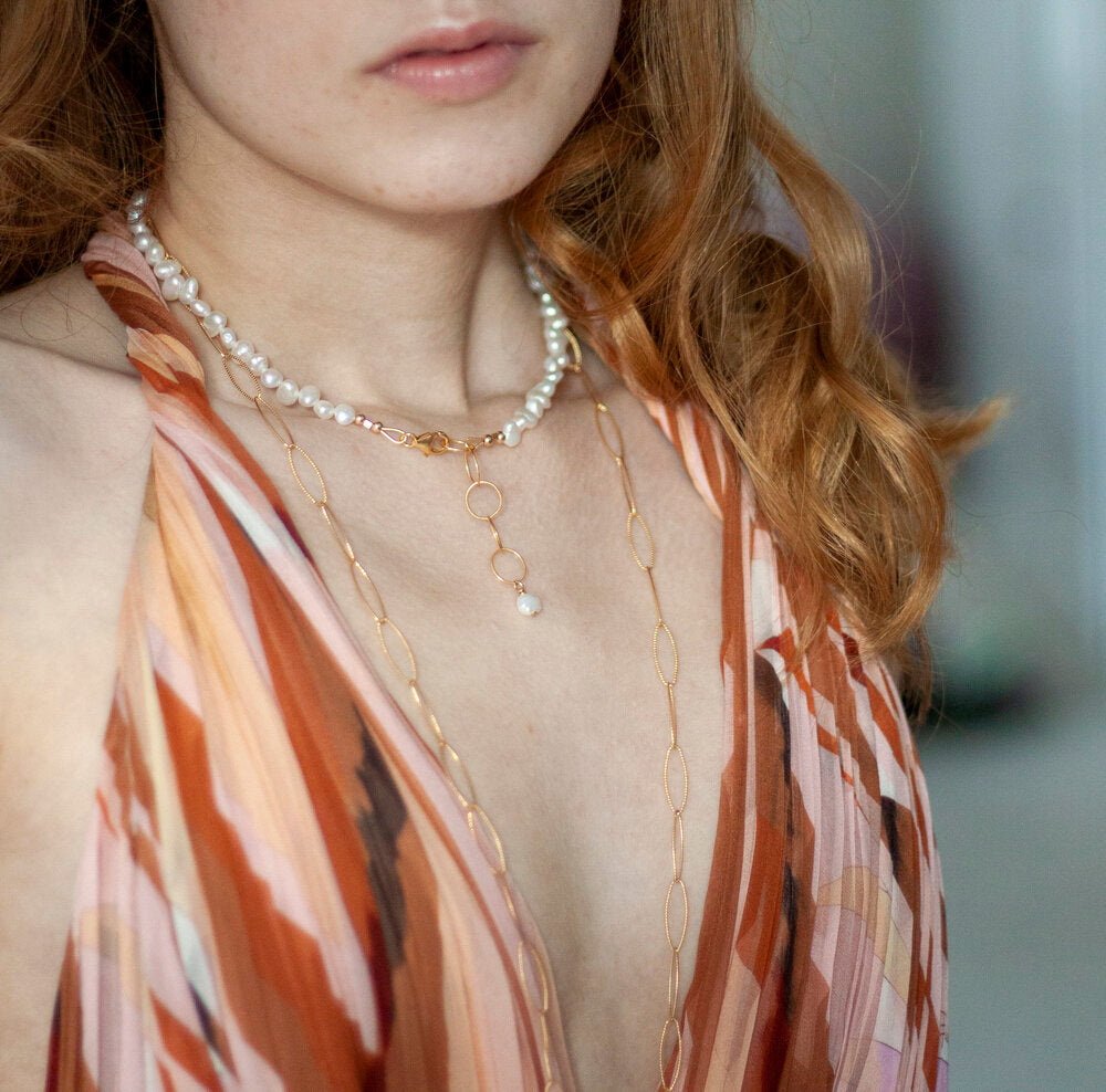 - Clasp to our Santa Barbara Pearl Necklace to create a double layered look