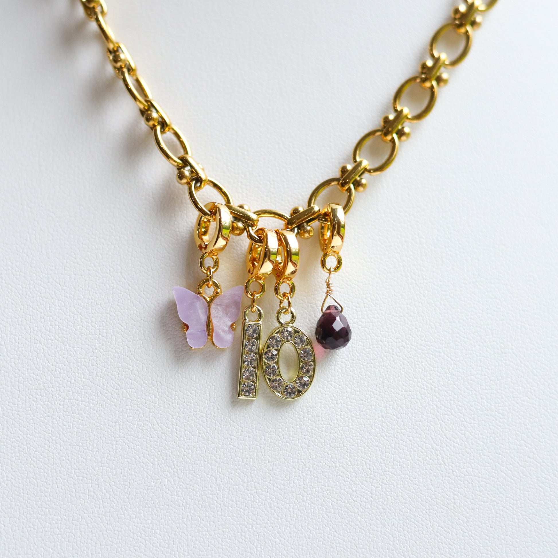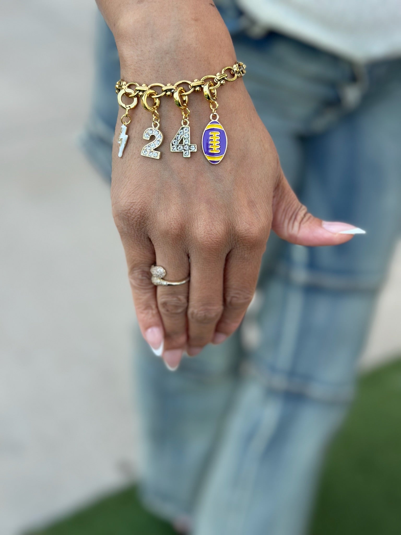 Get ready to represent on game day with our Gold Number Lock Charms! Or, grab your favorite number that is lucky! Inset with sparkly stones, your wrist or necklace will sparkle!