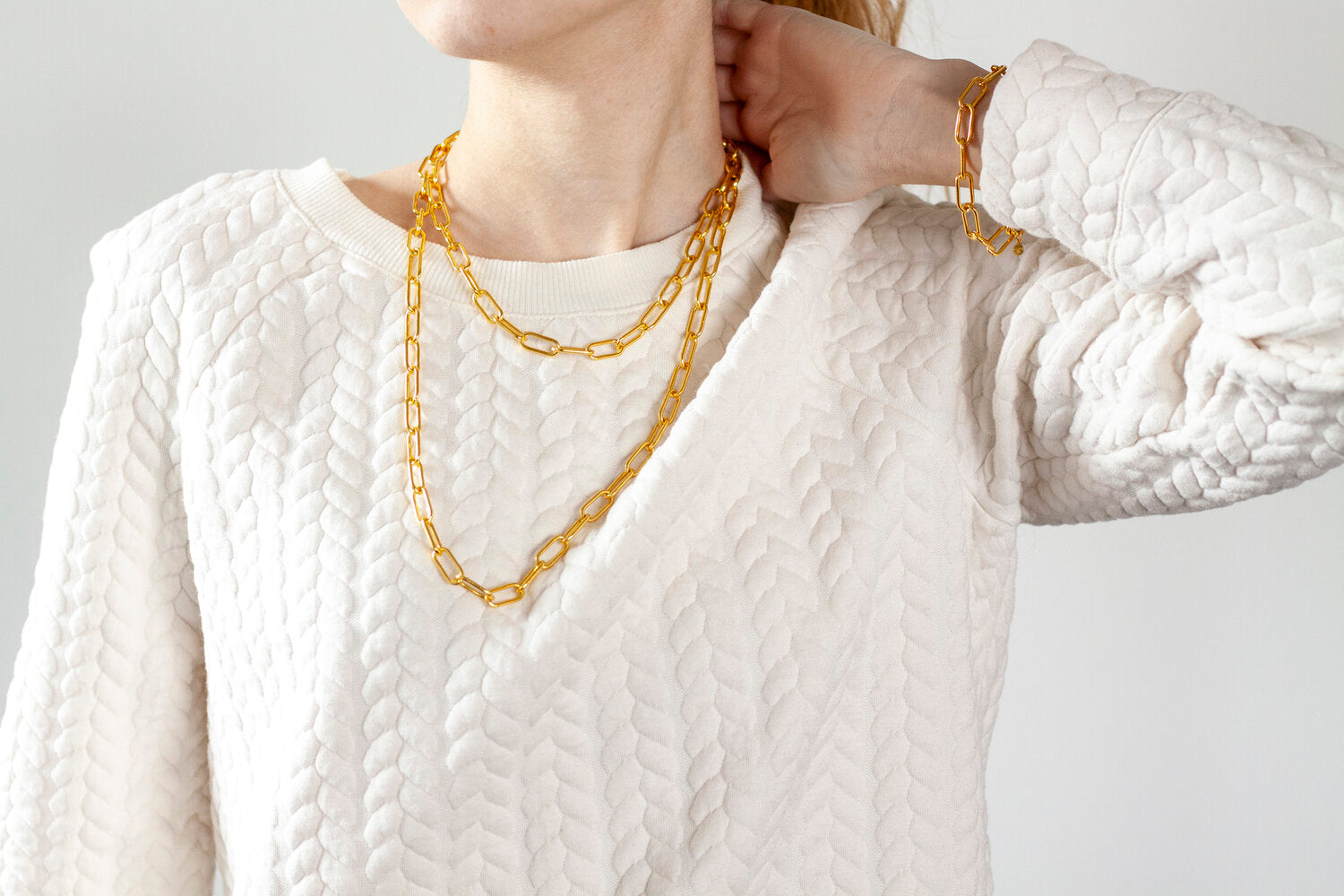 Stackable and bold, the paperclip chain bracelet is perfect with other bracelets or as a standalone accessory. Large links allows adjustable closure. Compatible with our Lock Charms to create a cute charm bracelet.