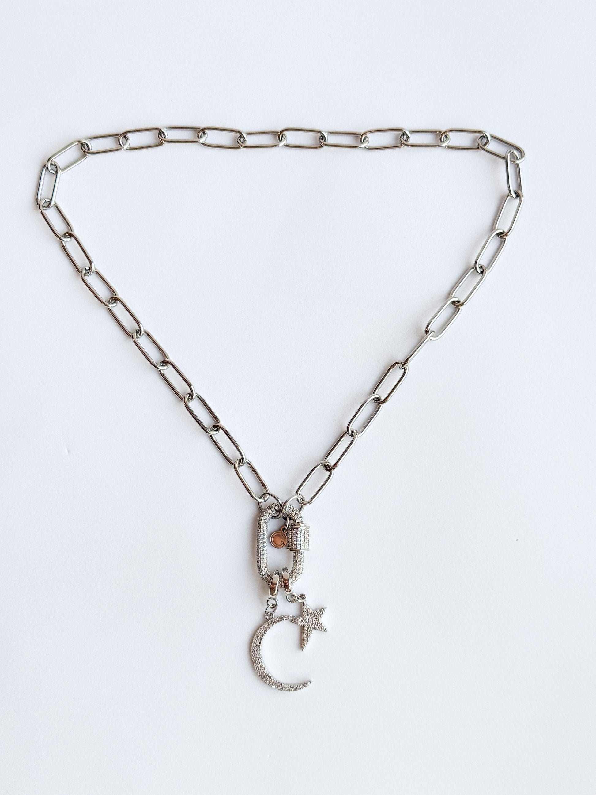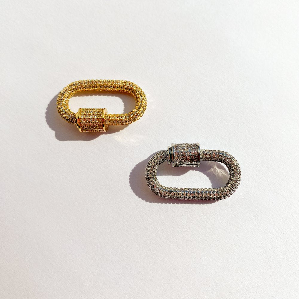 Introducing our sparkling addition to the Build Your Own Jewelry Bar - the pave clasp with dazzling crystals, designed for crafting your personalized charm necklace. Not only can you use this clasp to create a necklace, you can also use it to create a charm for your bag!