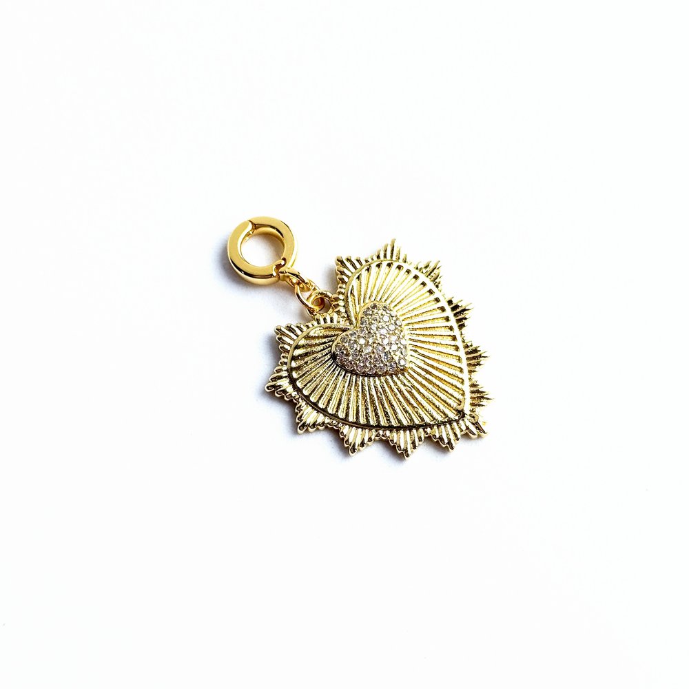Part of our Lock Charm Collection for The Build Your Own Jewelry Bar, the Pavé Heart Burst Lock Charm is a radiant gold-plated charm featuring a heart with delicate lines drawing into the center. At its core, a smaller heart is shaped by flush-set CZ stones. Representing love, passion, joy, courage and inner strength, this charm is a popular and fun motif that goes with any style and outfit!