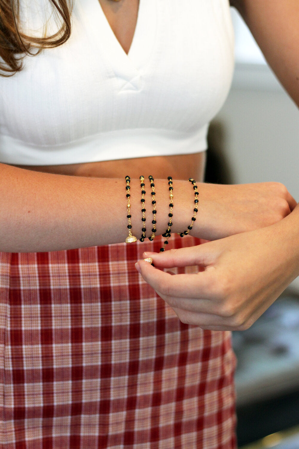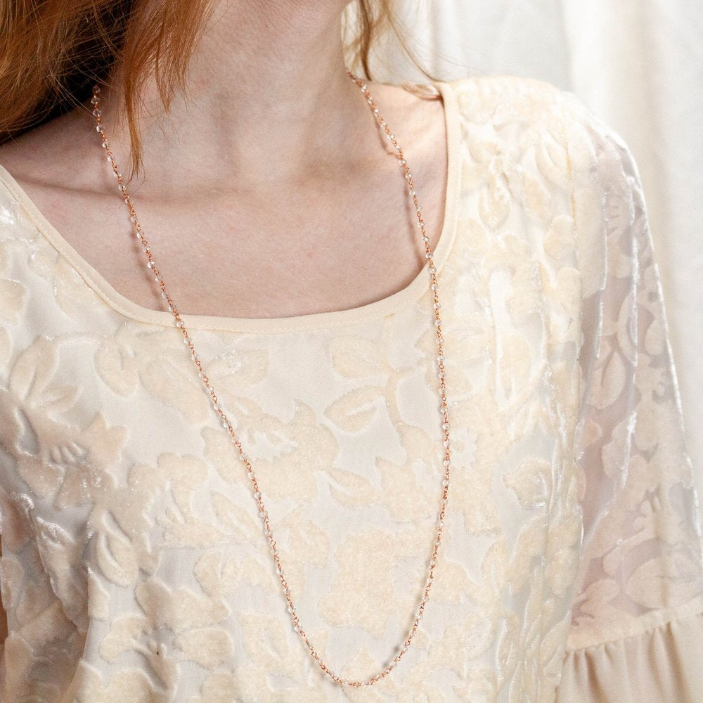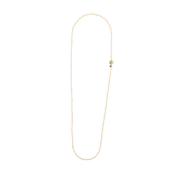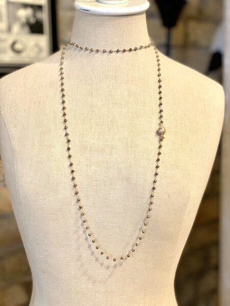 The Delicate rosary wrap is handcrafted with 14K gold-filled wire, natural gemstones and a Cubic Zirconia crystalized magnetic clasp. The magnetic closure allows the piece to be worn in a plethora of ways. Style this piece as a long necklace, layered with other delicate pieces or open the magnetic clasp to wrap the piece twice or three times around your neck. The piece can also be wrapped around the wrist as a multiple strand bracelet. With so many options, this is the perfect piece to add to your jewelry box and bring along for travel. The versatility is unmatched.