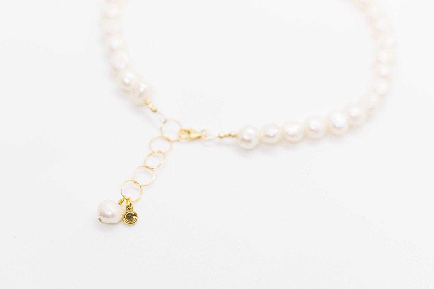 Introducing the Santa Barbara Pearl Necklace, our favorite pearl piece for beach days or for an evening moment. Hand-strung with white freshwater pearls, this necklace is delicately strung on stainless steel wire and finished off with a 14K gold-filled adjustable closure and findings.