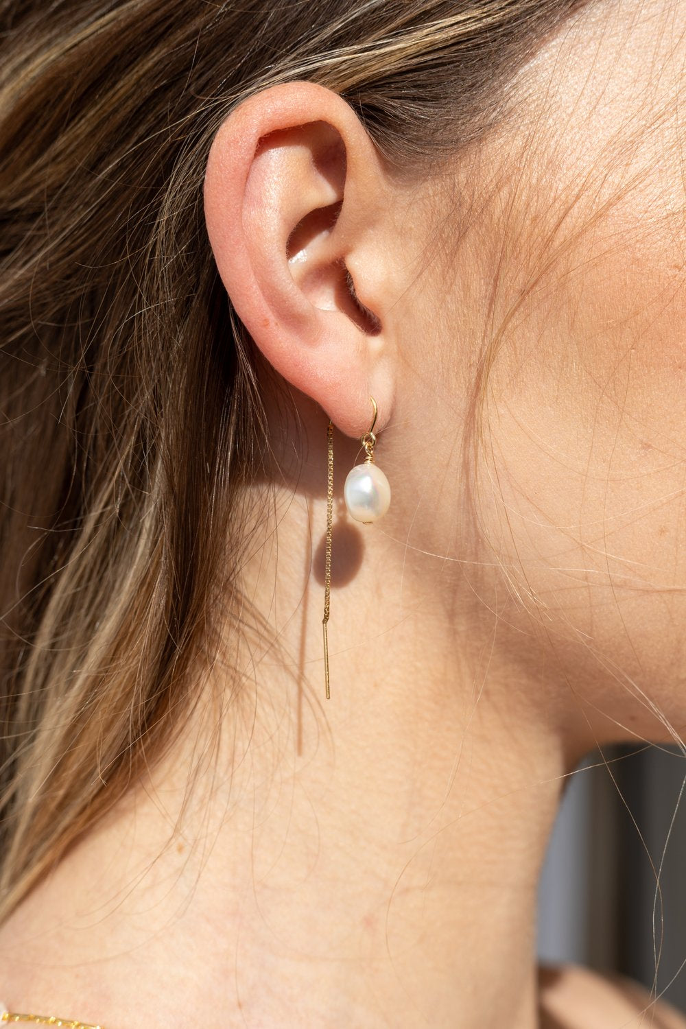 Introducing our Santa Barbara Pull Thru Thread Earrings - the perfect addition to any jewelry collection. Made with freshwater pearls and 14K gold-filled pull-thru hardware, these earrings are perfect for everyday wear or for elevating any look. Available in Two different sizes, these pearls are also great for Brides and bridesmaids!