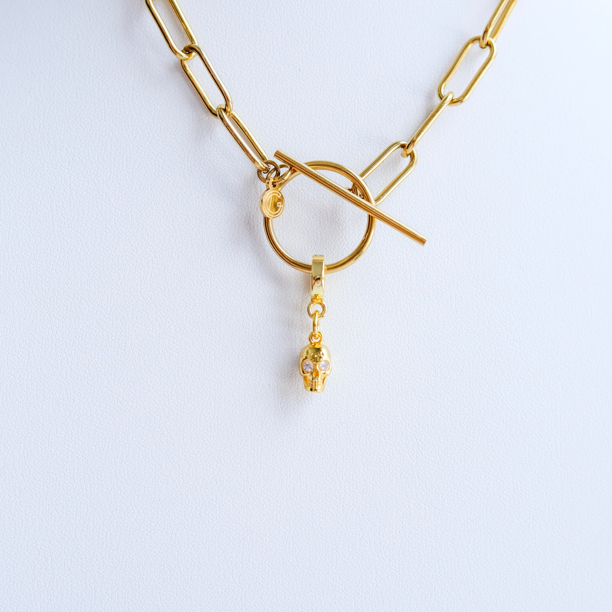 Add some edge to your look with the Skull Lock Charm! Skulls can represent mortality, but also represent wisdom, transformation, rebirth, bravery and strength. Choose between our classic skull, or pick a skull with insect cubic zirconia stones in the eyes for more sparkle!